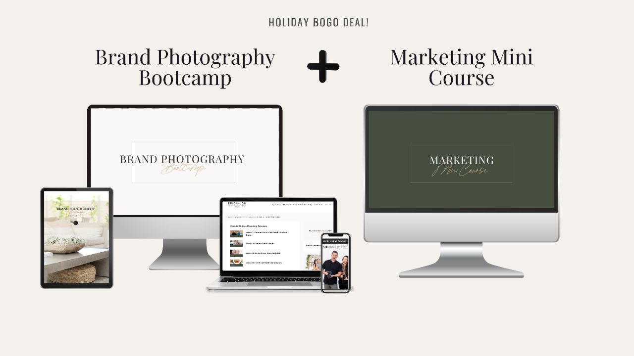 BOGO: Brand Photography Bootcamp for $499 (75% off) and get the Marketing Mini Course FREE